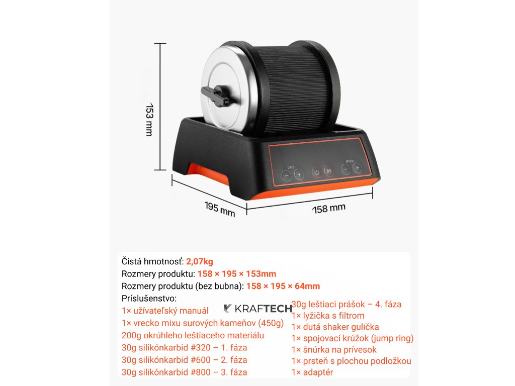 Kompletná sada na leštenie kameňov, kapacita 0,9 kg