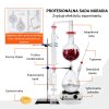 Destilačná aparatúra pre éterické oleje z bylín s kapacitou 2000 ml a sadou 28 dielov, vrátane 1000W vykurovacej dosky, umožňuje efektívnu a čistú výrobu esenciálnych olejov. Vyrobená z odolného borosilikátového skla 3.3, ponúka štandardné spoje 24/40 a obsahuje profesionálne príslušenstvo, ktoré zaisťuje jednoduchú destiláciu a spracovanie produktov.