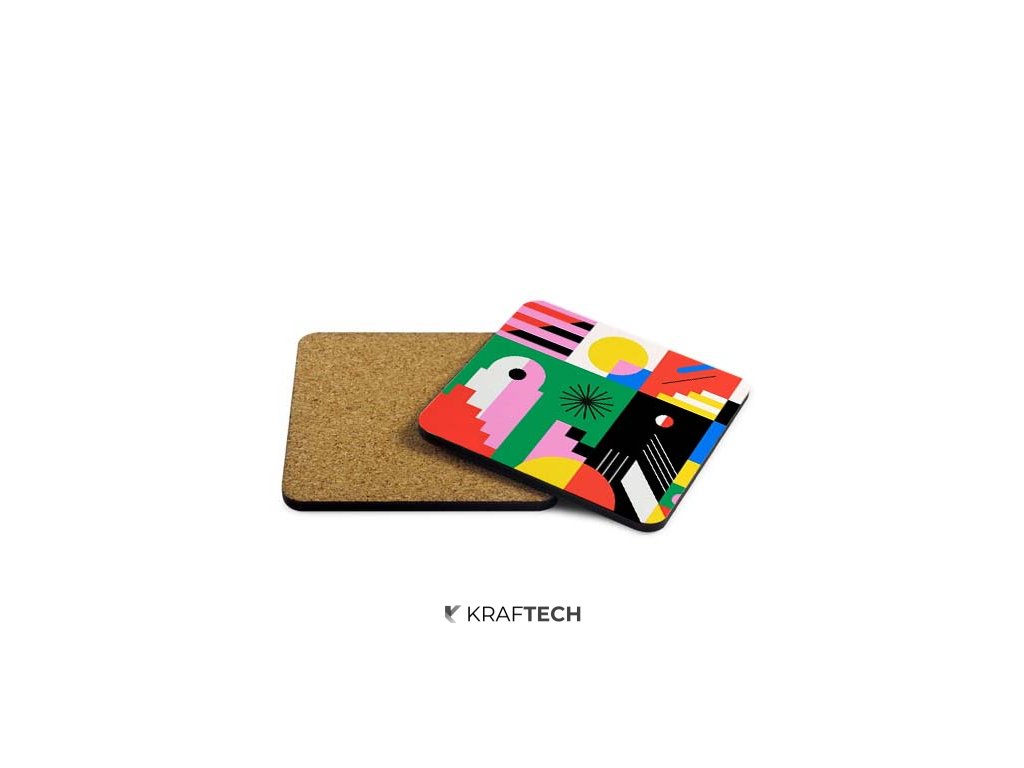 Korková podložka na hrnček – štvorcová (10 × 10 cm, 3 mm), pripravená na sublimáciu. Chráni stôl a zaručuje sýte farby motívov. Balenie 25ks.