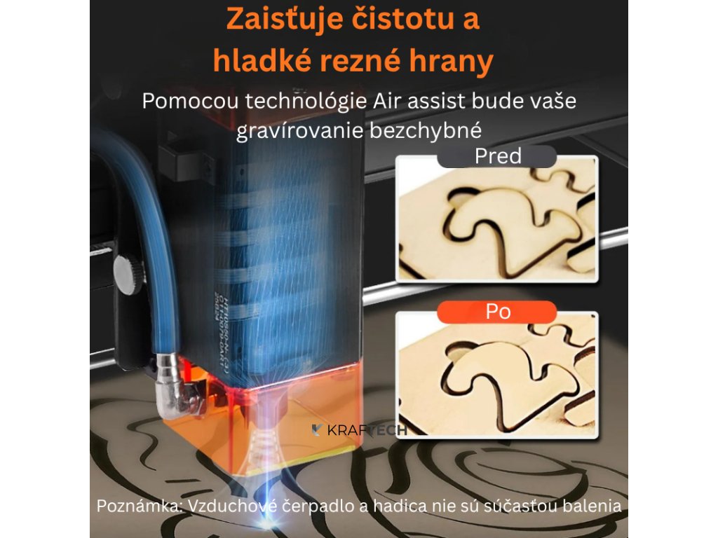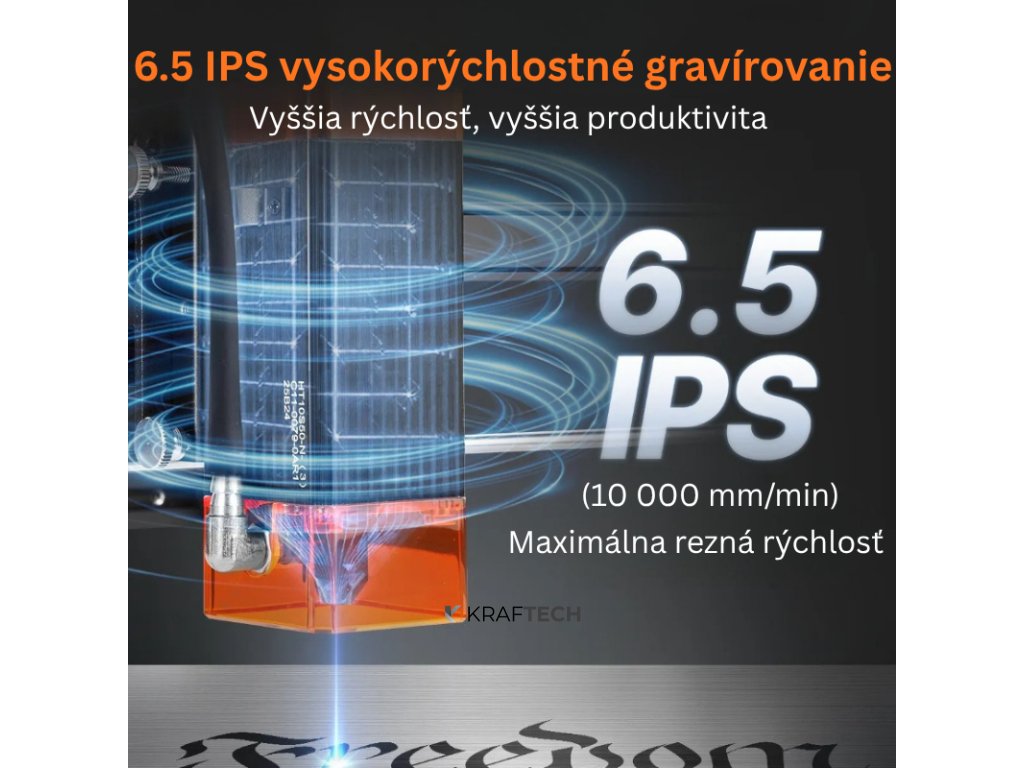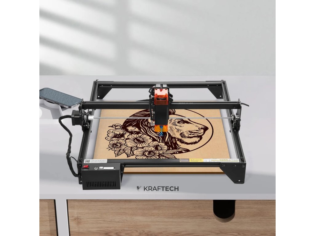 Zariadenie disponuje výkonom 5 W (5 000 mW), čo umožňuje efektívne gravírovanie a rezanie viac než 100 typov materiálov. Laserová hlava má životnosť viac ako 10 000 hodín pri prevádzke na 80 % maximálneho výkonu, čo garantuje dlhodobú a stabilnú funkčnosť bez potreby častej výmeny komponentov.