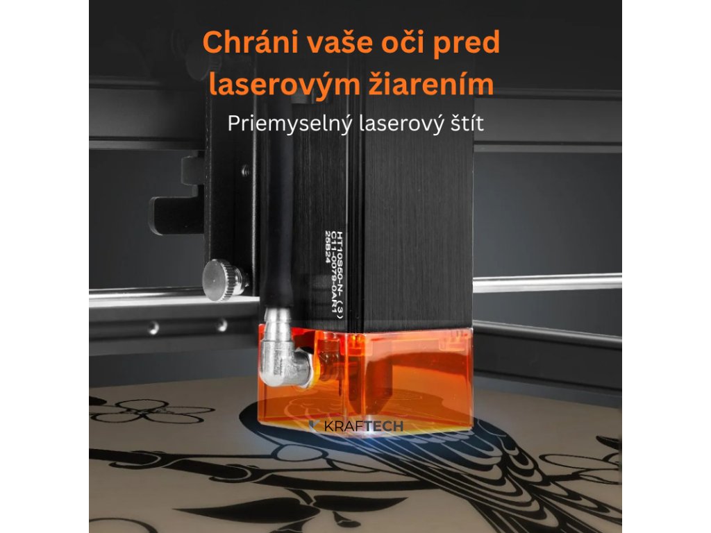 Laserová gravírovačka je vybavená integrovaným núdzovým vypínačom, ktorý umožňuje okamžité zastavenie prevádzky v prípade potreby. Ochranný UV filter na laserovej hlave znižuje expozíciu očí škodlivému žiareniu až o 97 %, čo zvyšuje bezpečnosť pri práci. Káblový manažment udržiava poriadok na pracovisku, čím sa znižuje riziko mechanického poškodenia alebo nehôd.