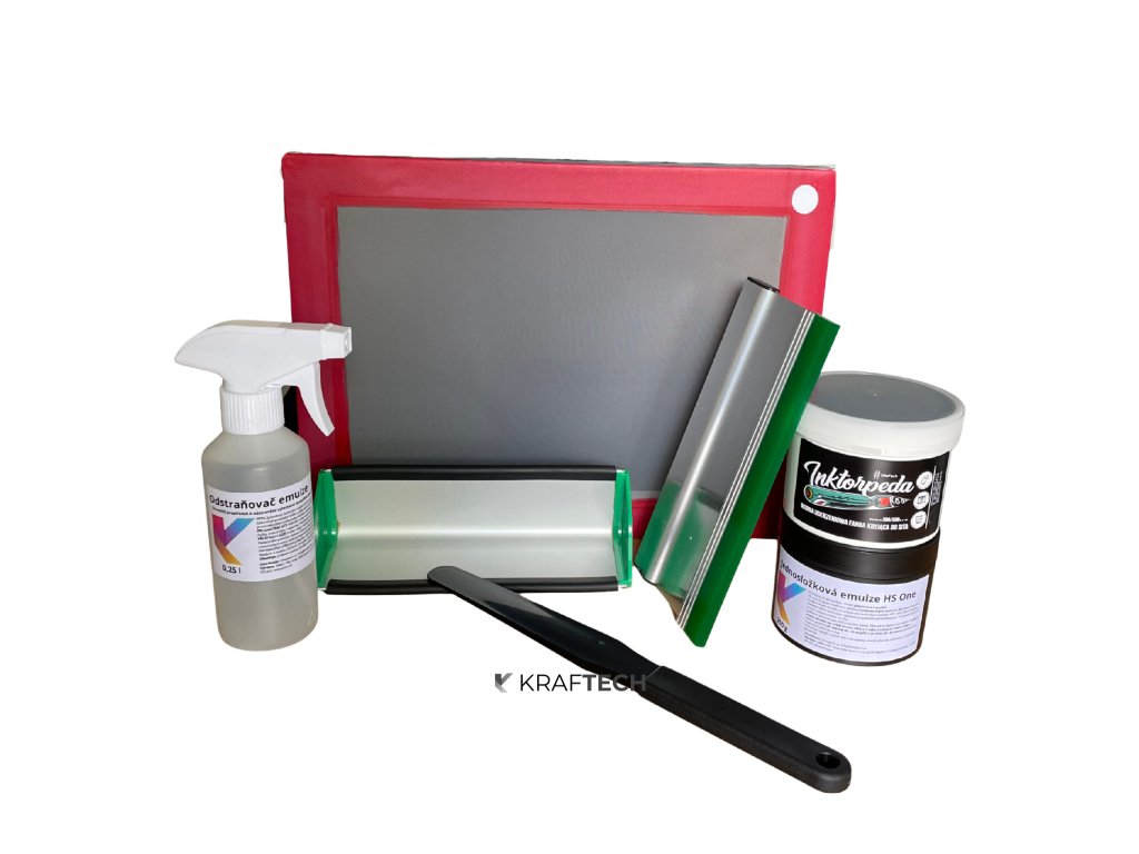 Kompletné príslušenstvo: Sada obsahuje všetko potrebné – od rámu a sieťoviny, cez kvalitnú emulziu a farbu, až po profesionálne nástroje, ako je stierka a korýtko.