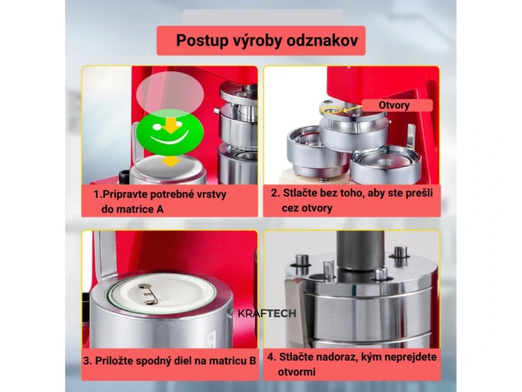 - Stroj na výrobu odznakov: Robustný stroj s ergonomickým dizajnom.