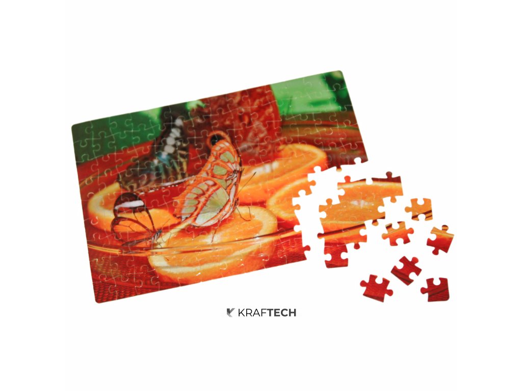 Krásne puzzle formátu A4 v lesklom bielom prevedení s rozmermi 29 x 20 x 0,2 cm a 120 dielov, ktoré sú ideálne pre sublimačnú potlač.