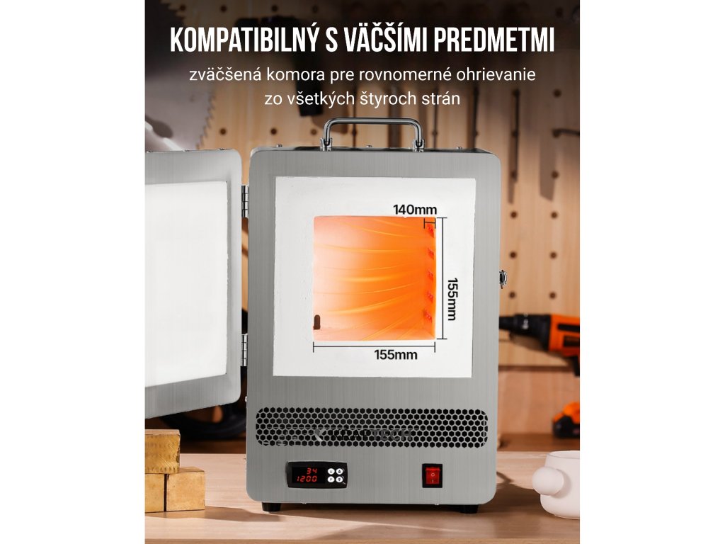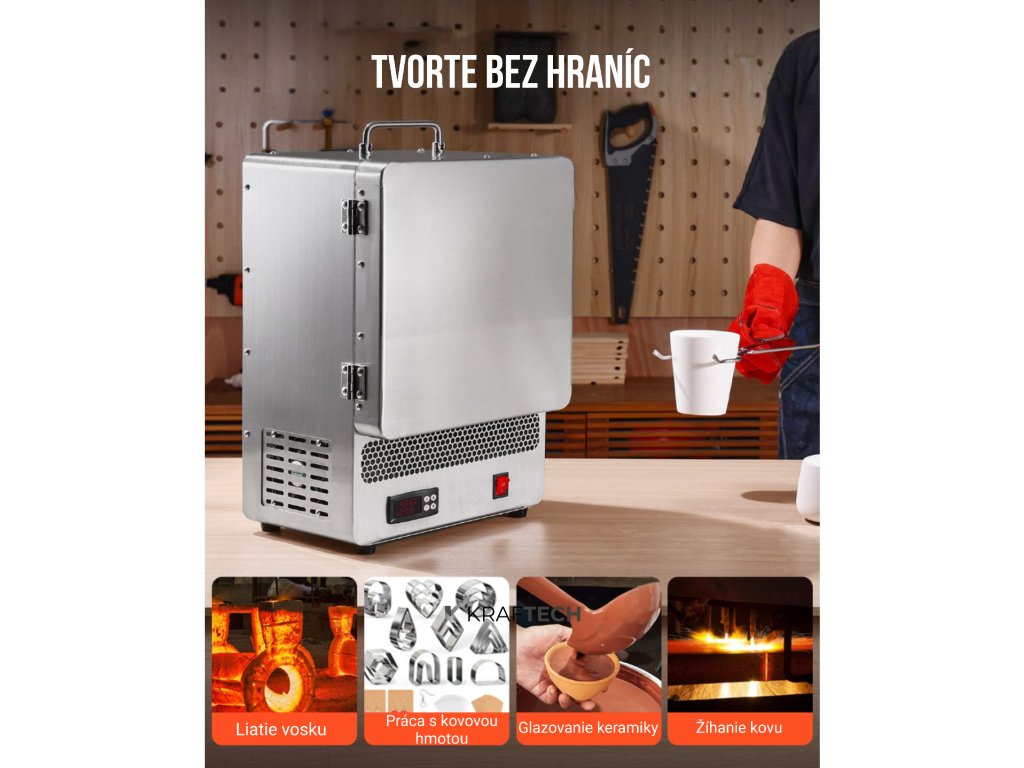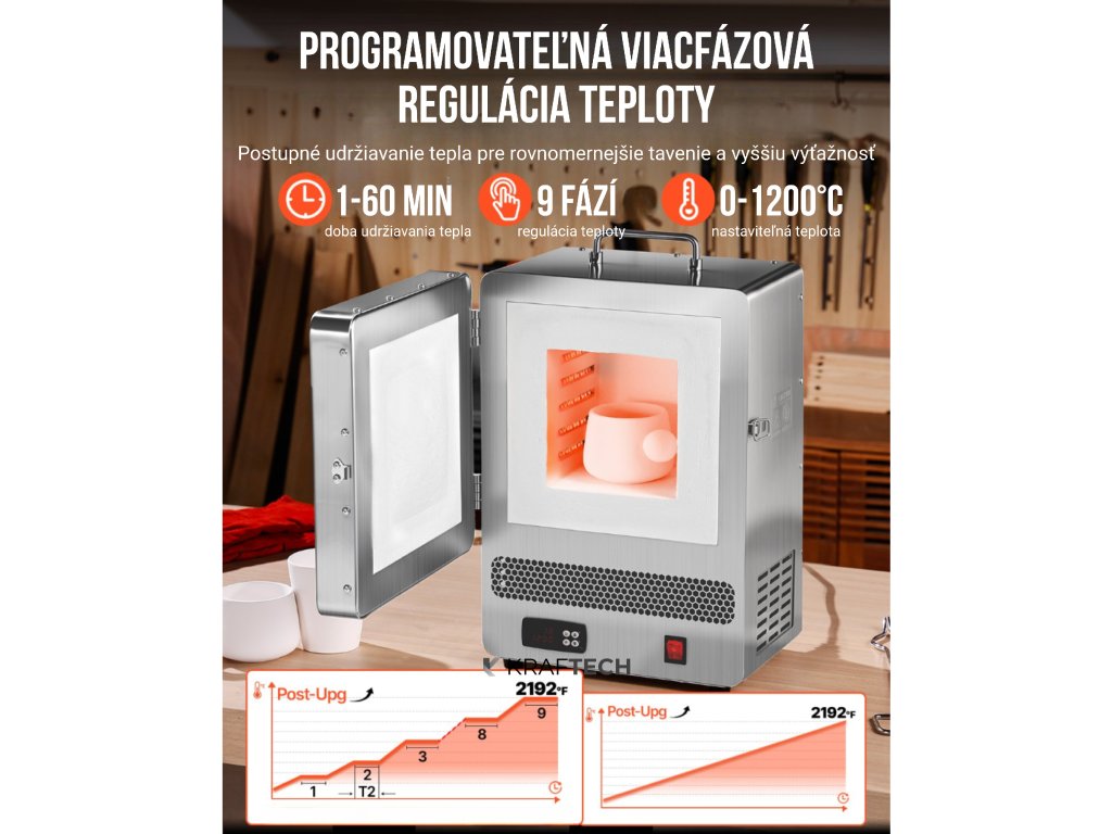 Táto stolová taviaca pec umožňuje nastaviť až 9 rôznych teplotných stupňov, čo je ideálne pre náročné procesy ako žíhanie kovu, odlievanie vosku alebo tavenie kovov.